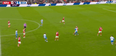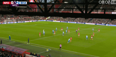 第45+1分钟,德克伊珀低射破门,布莱顿1-0森林
